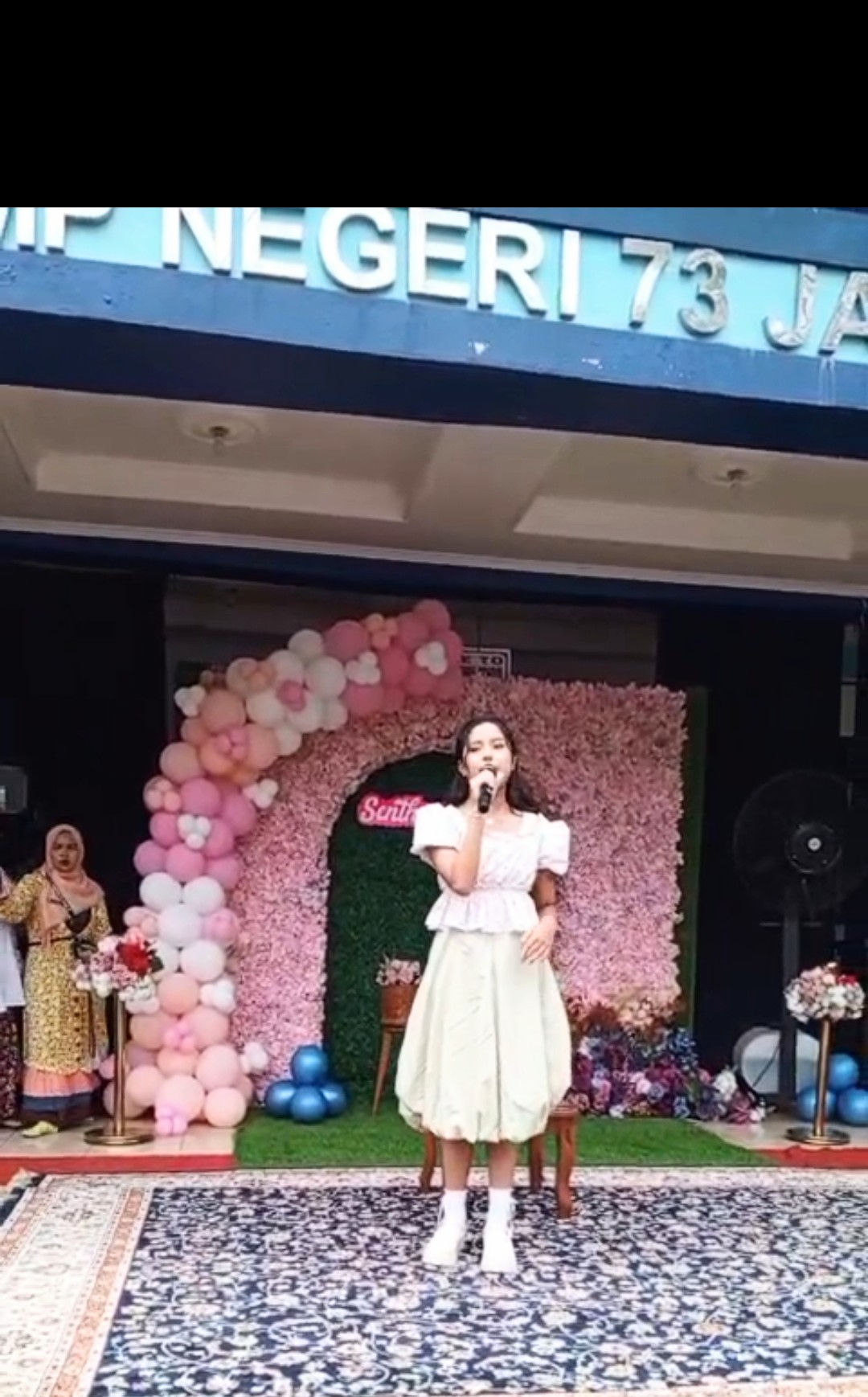 Alisha kelas 8A berpidato dalam acara Ultah SMPN 73 jakarta