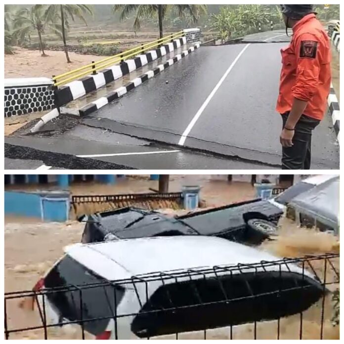 Fasilitas umum, hingga ruas jalan propinsi terputus akibat longsor, beberapa jembatan dijalan propinsi ikut tergerus longsor.