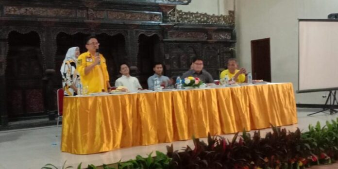Dalam sambutanya Calon Bupati Kabupaten Bogor yang juga merangkap sebagai Ketua DPD partai Golkar H.Wawan Haikal Kurdi menyampaikan dalam pidatonya berharap pasangan Prabowo – Gibran dapat memenangkan Pemilu 2024 dengan satu putaran.
