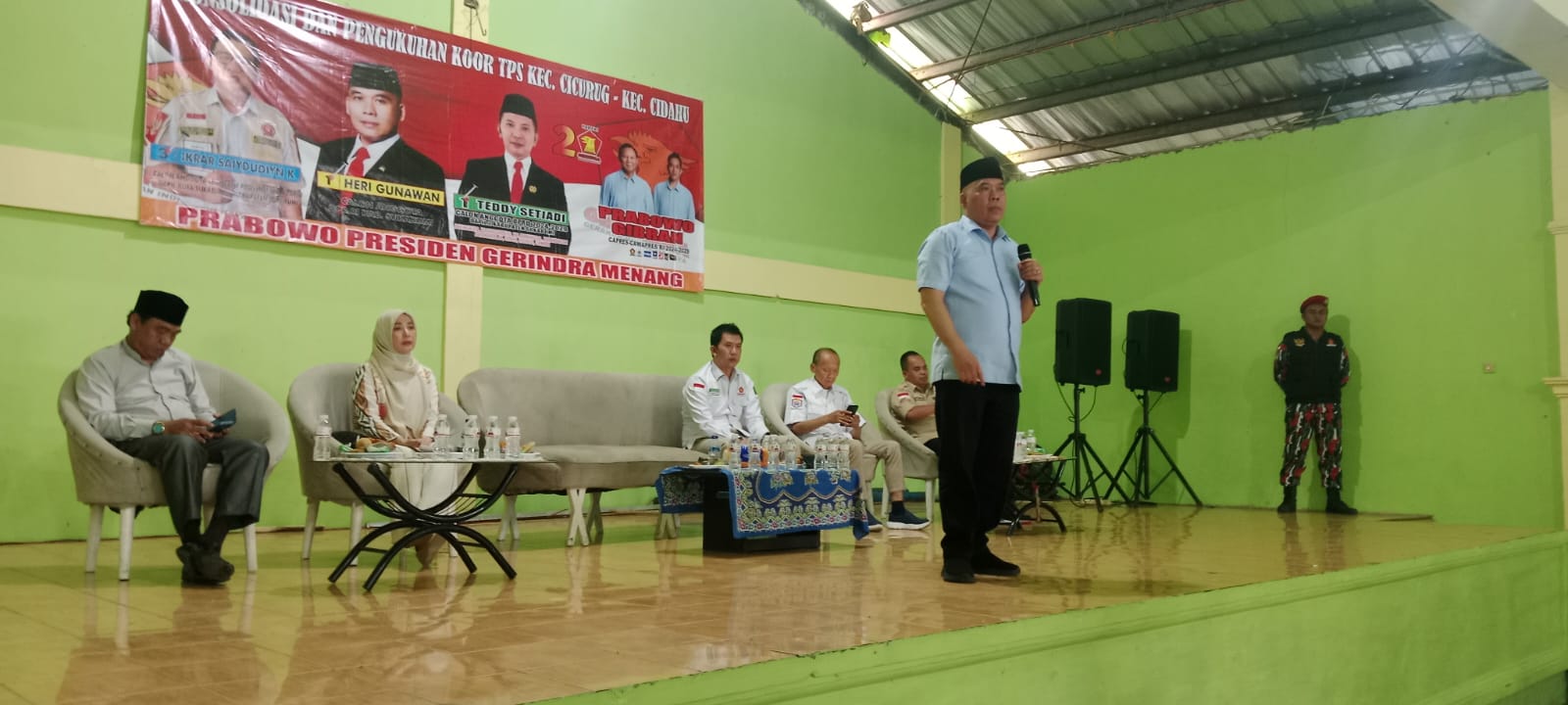 Acara tersebut turut dihadiri Ketua Korcam Cicurug Ujang Jomen, Ketua Pemenangan Korcam Cidahu Adi Prasmono, Gema Wahyu Ilahi Qory Ustadz Mumuh, Sekjen Satria Kab. Sukabumi Ikrar, para relawan dari Partai Gerindra, Anggota SATRIA ( Satuan Relawan Indonesia Raya ), tokoh masyarakat, LMPI dan para tamu undangan lainnya, yang berlangsung di Gor Cicurug Jl. Leuwinanggung, Desa Purwasari, Kecamatan Cicurug, Kabupaten Sukabumi – Jawa Barat yang dihadiri ratusan relawan.14 Januari 2024.