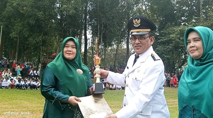 juara tahun ini di raih oleh PKK Desa Karawang, penyerahan piala oleh camat kepada ibu kades Karawang, tentunya ini membanggakan warga Desa Karawang kecamatan Sukabumi.