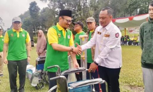 suaraaksirakyat, Kabupaten Sukabumi,- Badan Amil Zakat Nasional (BAZNAS) Kabupaten Sukabumi berkolaborasi dengan Dinas Sosial (DINSOS) Kabupaten Sukabumi pada peringatan Hari Lanjut Usia (HLUN) Ke-29 memberikan bantuan kepada para lansia di wilayah Kabupaten Sukabumi, bantuan tersebut berupa kursi roda, alat bantu jalan seperti tongkat dan bantuan lainnya.