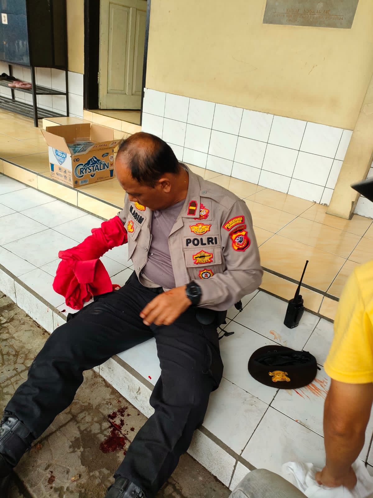 “Lalu ada ledakan. Sekarang pelaku meninggal dunia di lobi. Tiga orang anggota kami mengalami luka-luka,” ujar salah seorang anggota polisi mapolsek Astana Anyar,Motip masih dalam penyelidikan.
