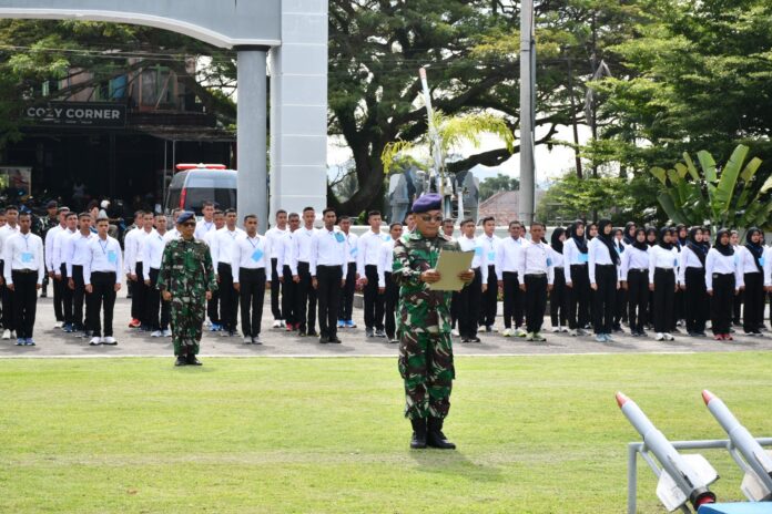 TNI AL, Sabang,- Menjelang dimulainya pelaksanaan seleksi penerimaan Prajurit TNI Angkatan Laut, Panitia Daerah (Panda) Lanal Sabang menggelar Penandatanganan Pakta Integritas di depan para Calon Siswa Bintara dan Tamtama Prajurit Karier Gelombang I Tahun Anggaran 2024. Kegiatan dipimpin oleh Danlanal Sabang Kolonel Laut (P) Son Haji Hariyoko, M.Tr. Hanla., M.M., bertempat di Lapangan Apel Mako Lanal Sabang, Jalan Yos Sudarso, Gampong Kuta Ateuh, Kecamatan Sukakarya, Kota Sabang, Jumat (5/1/2024).