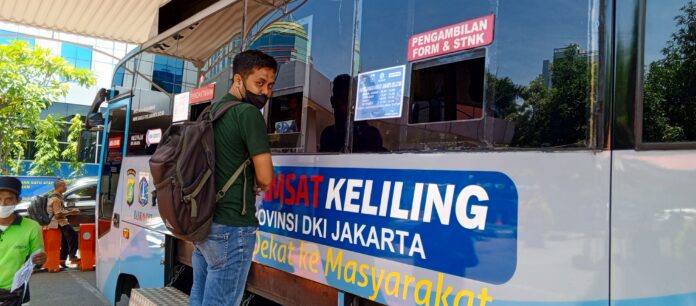 Bapak Arie yang sedang mengurus perpanjangan di Samsat keliling Jakarta Selatan