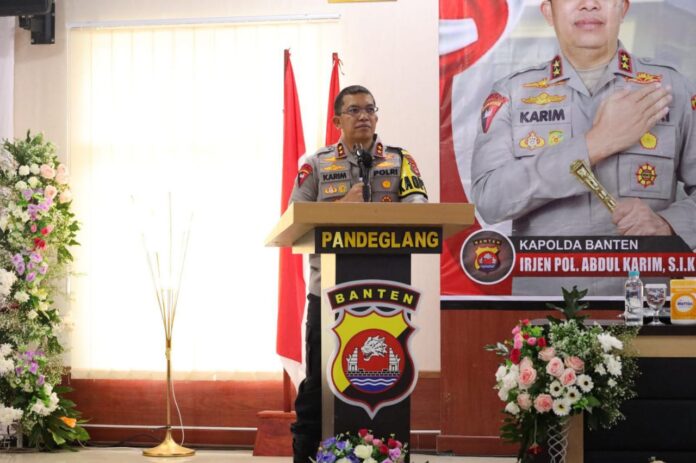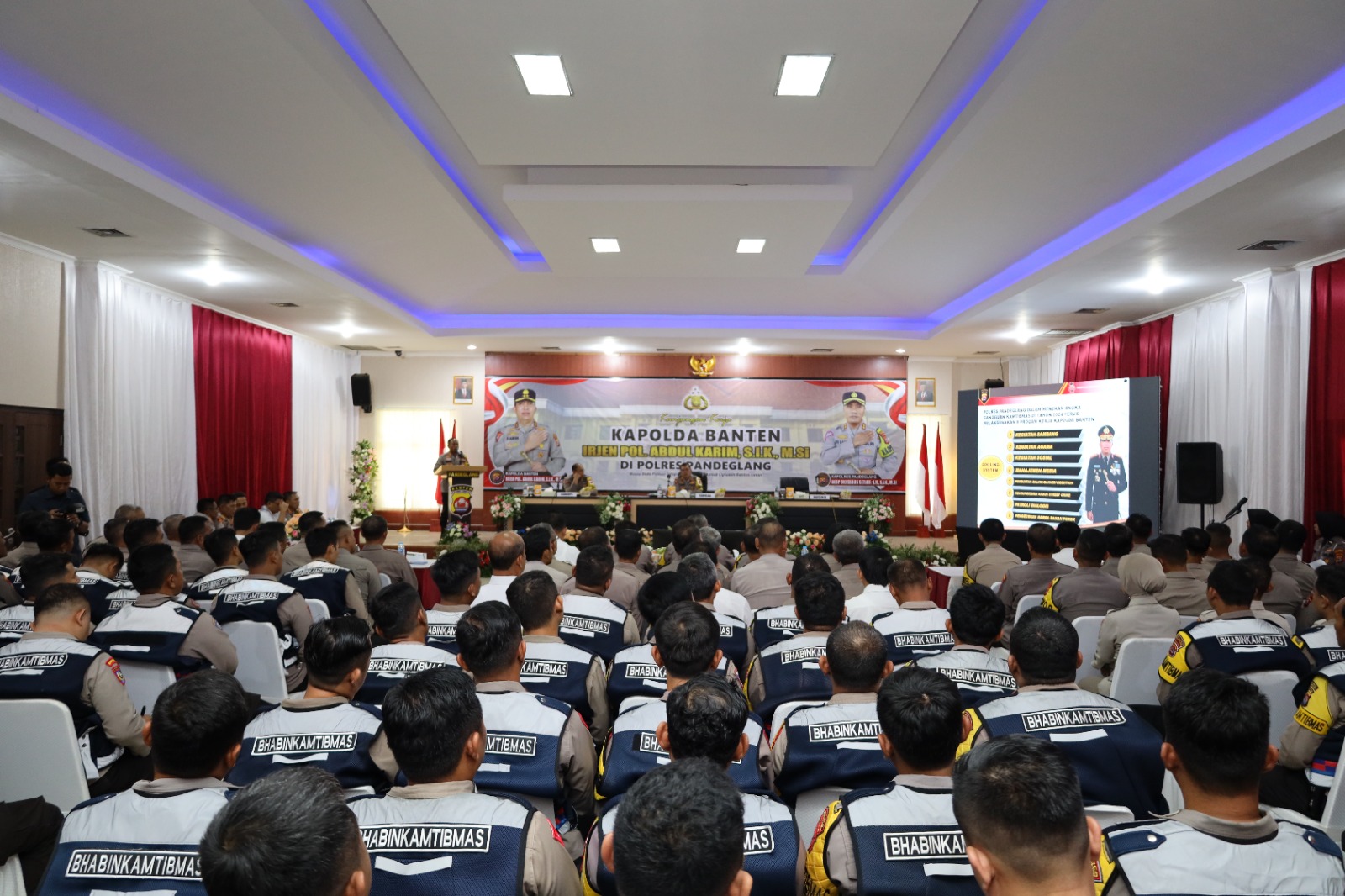 SuaraAksiRakyat.com, SERANG,- Kapolda Banten Irjen Pol Abdul Karim didampingi Pejabat Utama Polda Banten melaksanakan kegiatan kunjungan kerja ke Polres Pandeglang bertempat di Aula Polres Pandeglang pada Rabu (10/01/24).