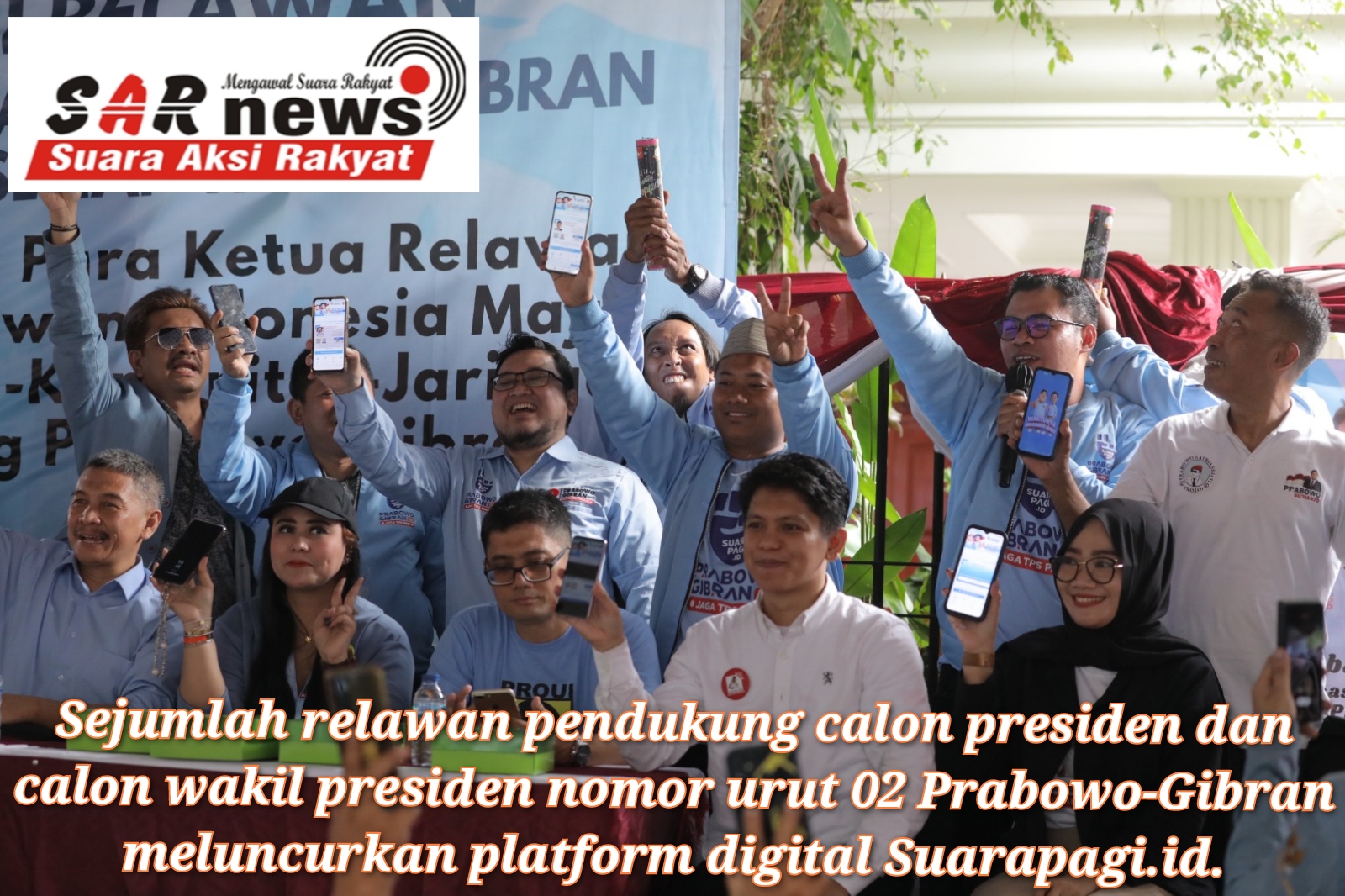 Sejumlah relawan pendukung calon presiden dan calon wakil presiden nomor urut 02 Prabowo-Gibran meluncurkan platform digital Suarapagi.id. Aplikasi ini dibentuk sebagai alat edukasi politik di kalangan Milenial dan Gen Z sekaligus untuk mengawal suara Prabowo-Gibran di TPS.