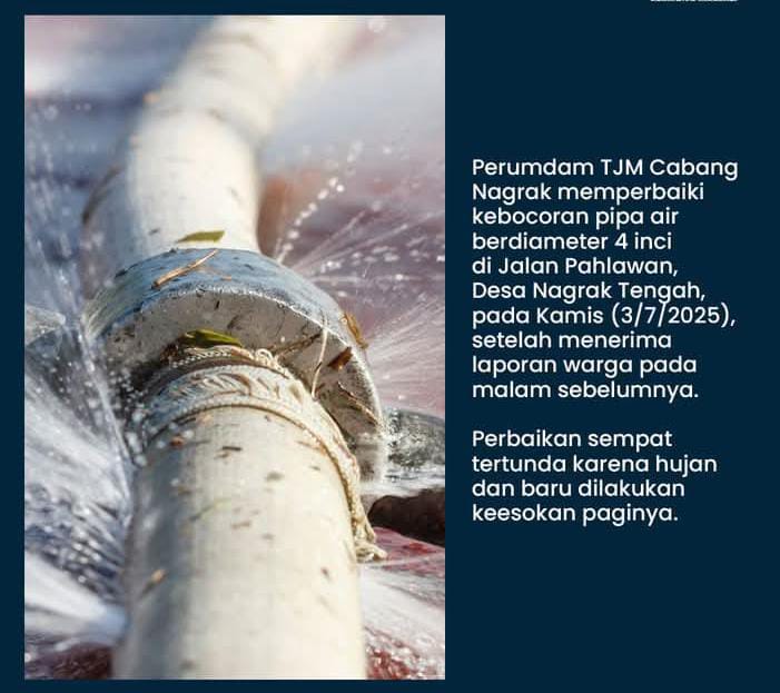 Kepala Perumdam TJM Cabang Nagrak, Tedy Sutady, mengatakan bahwa perbaikan dilakukan setelah adanya laporan dari masyarakat mengenai kebocoran pipa yang terdeteksi sejak Rabu, 2 Juli 2025 malam.