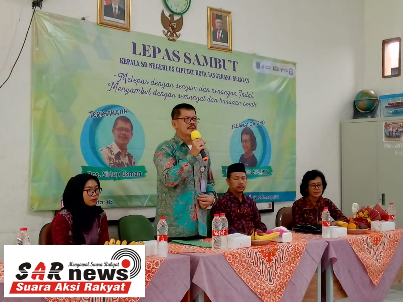Dengan mengusung Tema “Melepas Dengan Senyum Dan Kenangan Indah, Menyambut Dengan Semangat dan Harapan Indah” lepas sambut Kepala Sekolah SDN Ciputat 05 Kota Tangerang Selatan yang semula dijabat oleh ( PLT ) Drs. Sidup Usman kepada Ermina Suhartini. S.pd.M.pd. berlangsung khidmat ( 6/1/24).
