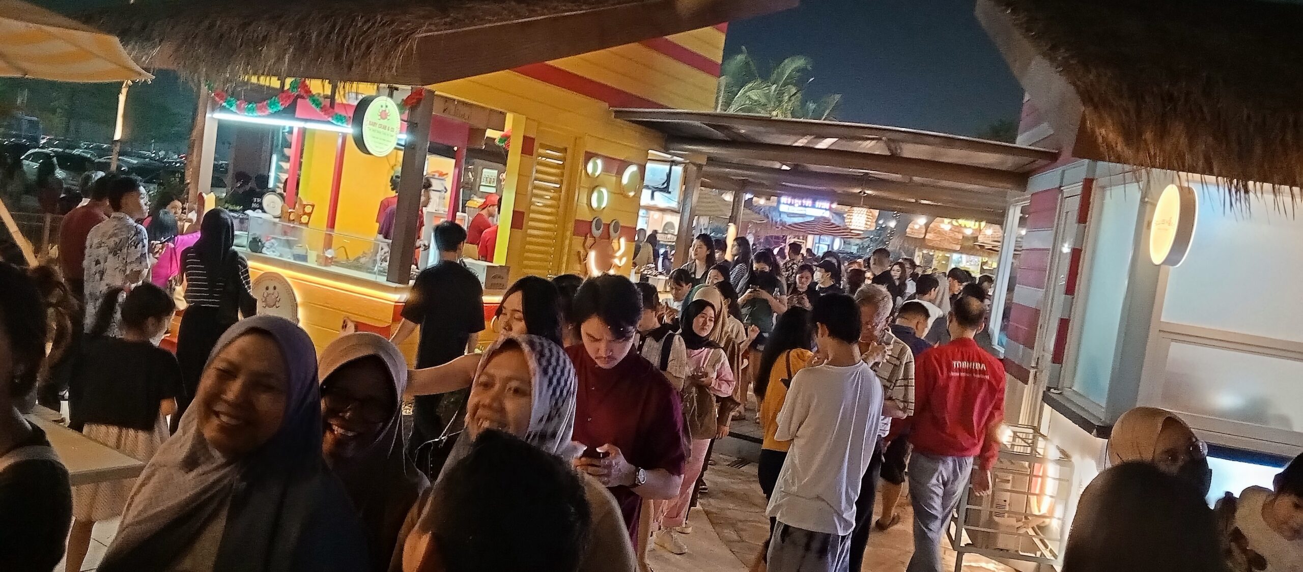 Antrian toilet kamar mandi wanita hingga 300 meteran yang begitu panjang di Pantai Aloha PIK-2