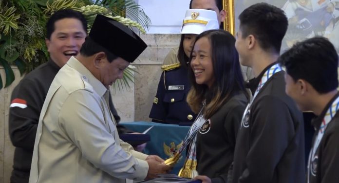 Deretan prestasi tersebut tampak membuat Presiden Prabowo terkesan. Ia pun secara antusias menghitung langsung medali-medali Martina Ayu di hadapan para undangan, didampingi Menteri Pemuda dan Olahraga Erick Thohir. Aksi spontan itu sontak memancing tepuk tangan meriah dari seluruh hadirin.