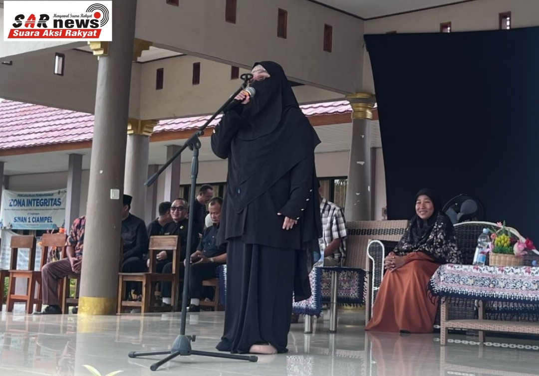 “Anak-anakku, hari ini kalian telah resmi menjadi alumni SMAN 1 Ciampel. Bawalah nama baik sekolah ini dengan kebanggaan dan penuh tanggung jawab. Jadilah pribadi-pribadi yang sholeh dan sholehah, yang selalu menjunjung tinggi nilai-nilai kejujuran, kerja keras, dan kepedulian sosial,” tutur beliau.