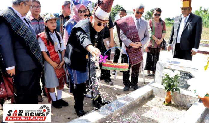 Bupati Simalungun H Anton Achmad Saragih sedang tabur bunga saat ziarah di makam Guru Jason Saragih sebagai pelopor pendidikan Simalungun