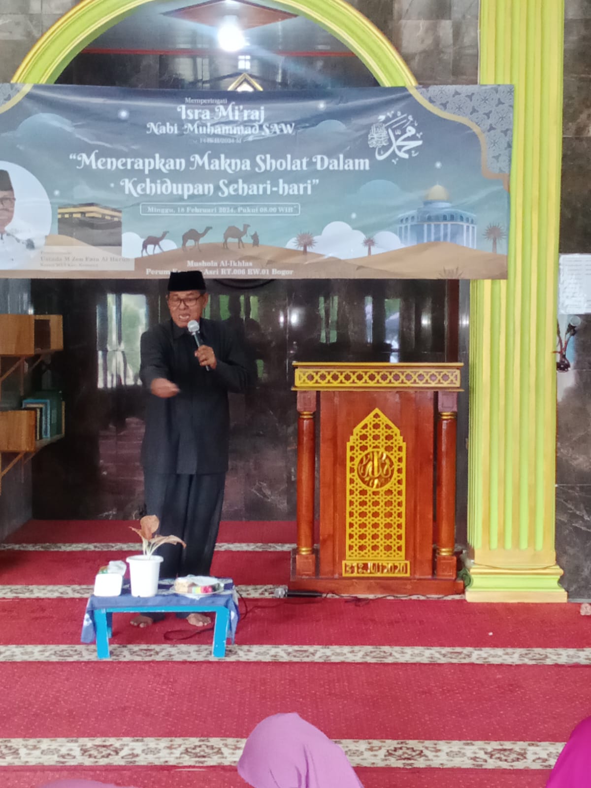 Dengan Tema Menerapkan Makna Sholat Dalam Kehidupan Sehari-hari, peringatan Isra Mi’raj 1445 H dilaksanakan di komplek Perumahan Kemang Asri Bogor yang dipelopori oleh Majelis Ta’lim Mushola Al-Iklas ( 18/2/24).