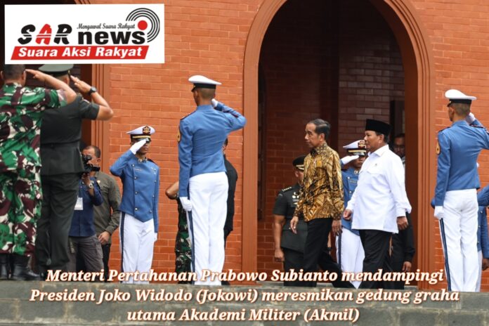 Menteri Pertahanan Prabowo Subianto mendampingi Presiden Joko Widodo (Jokowi) meresmikan gedung graha utama Akademi Militer (Akmil) di Kabupaten Magelang, Jawa Tengah, Senin (29/1).