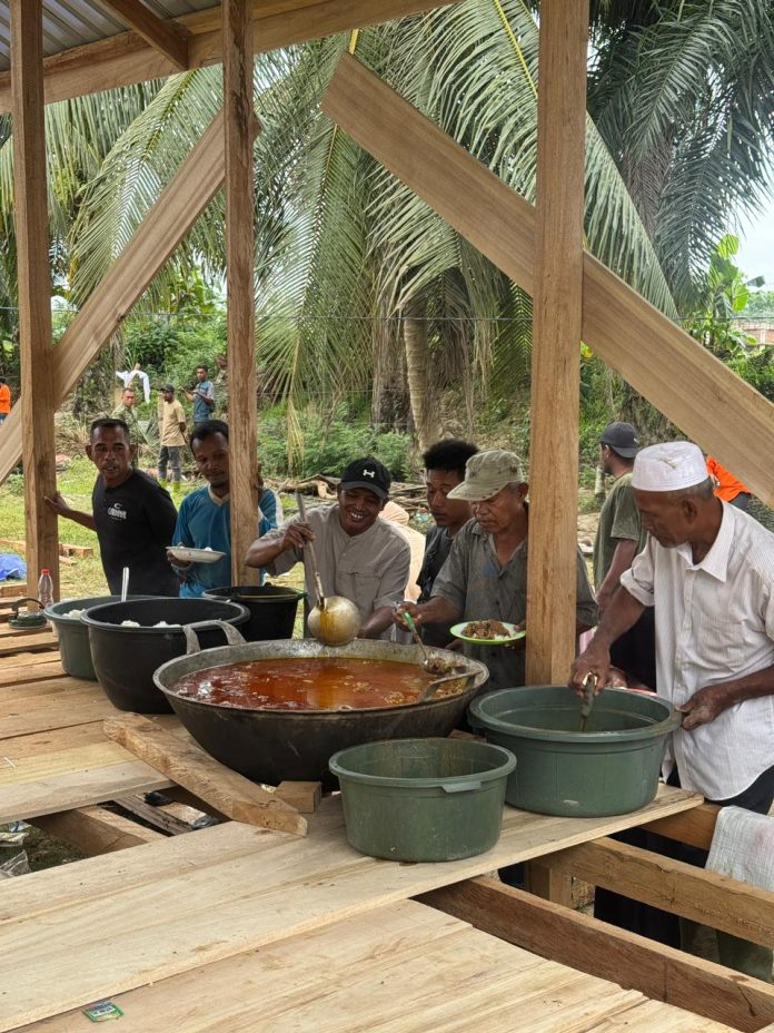 Warga Desa Geudumbak tampak antusias menyiapkan Kuah Beulangong, gulai tradisional khas Aceh, untuk menyambut Meugang. Sapi dari Prabowo tersebut diantarkan ke warga oleh relawan dari Badan Komunikasi Pemerintah (Bakom RI) dan kelompok relawan lainnya.