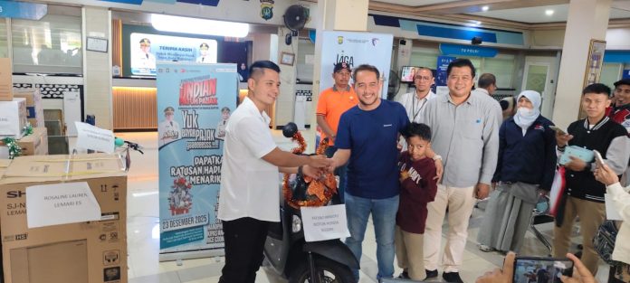 Kepala Kantor Samsat Ciputat KUPT Beny, menyerahkan hadiah kepada pemenang