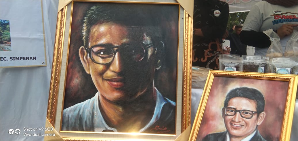 Nampak terlihat Dari desa. Cihaur ,kec.Simpenan yang memperkenalkan 12 wisata yang ada didaerahnya,produk UMKMnya, berupa Cemilan,bahan makanan serta kerajinan tangannya ,juga pelukis yang berada Dari desa. Cihaur yg bernama kang. Sasmita mampu melukis wajah Sandiaga Uno dlm waktu 3jam saja.