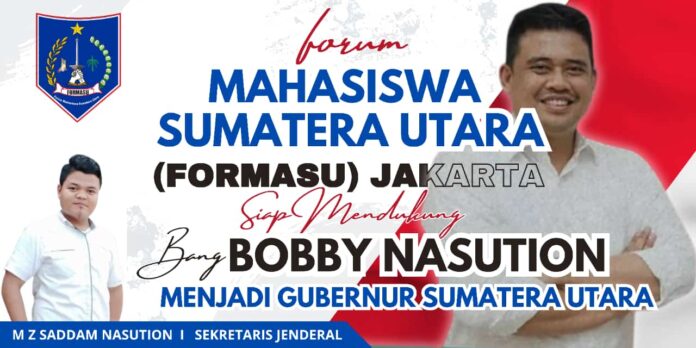 SuaraAksiRakyat.com, JAKARTA – Sekretaris Jenderal (Sekjen) Forum Mahasiswa Sumatera Utara (FORMASU) Jakarta M. Zulsaddam Nasution mengatakan siap mendukung Bobby Nasution maju di Pilgub Sumatera Utara 2024.