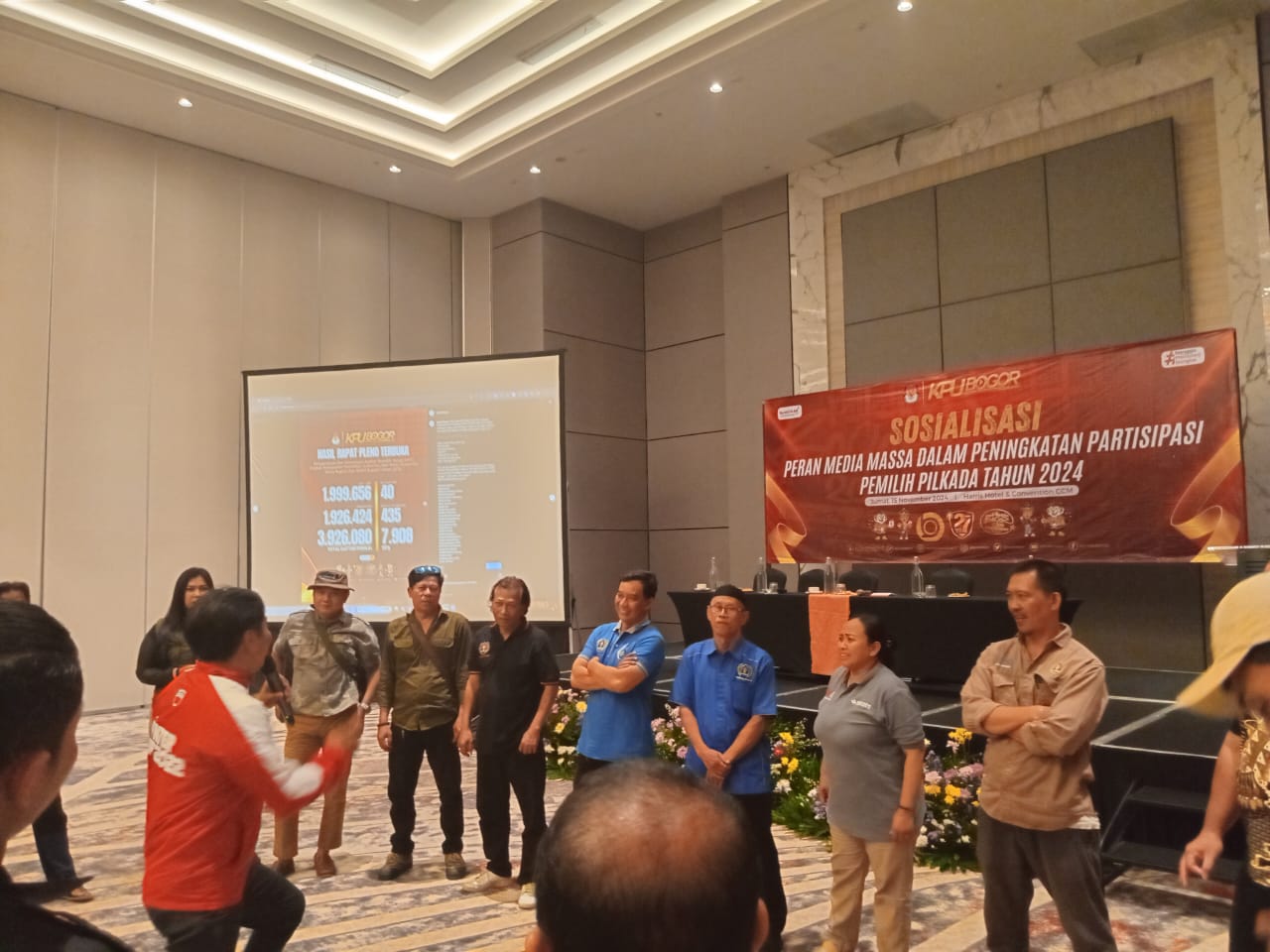 Komisi Pemilihan Umum (KPU) Kabupaten Bogor mengadakan kegiatan sosialisasi bertema “Peran Media Massa dalam Peningkatan Partisipasi Pemilihan Pilkada Tahun 2024”, bertempat di Hotel Harris, Cibinong, pada Jumat, 15 November 2024.