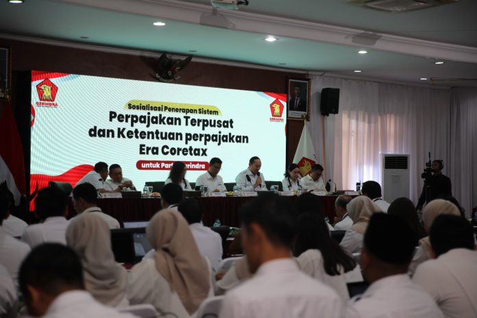 DPP Partai Gerindra menggelar kegiatan Sosialisasi Penerapan Sistem Perpajakan Terpusat dan Ketentuan Perpajakan Era Core Tax sebagai upaya meningkatkan pemahaman serta kepatuhan pajak bagi seluruh jajaran pengurus dan kader di berbagai daerah.
