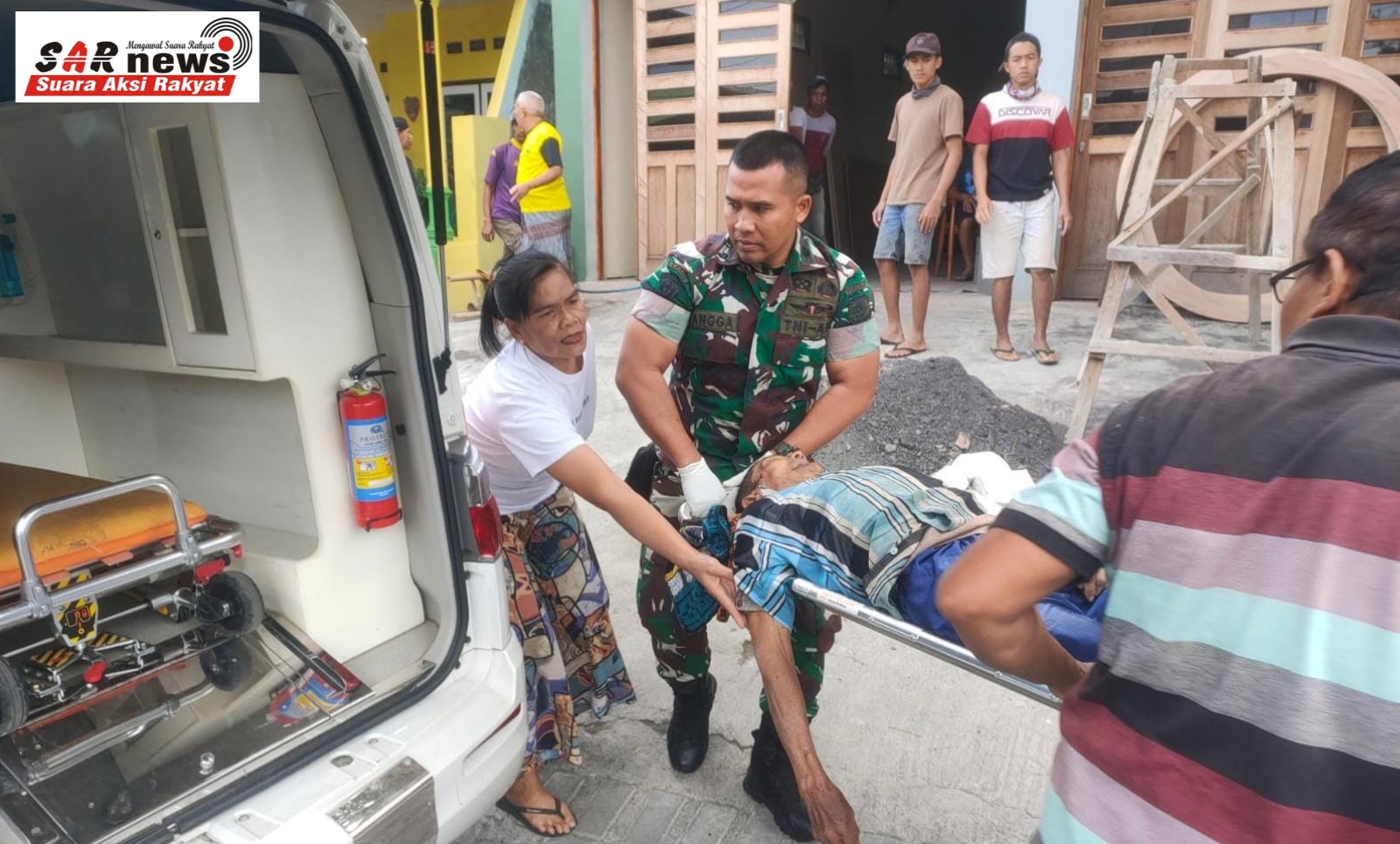 Ambulance Klinik satuan Yonkes 2/ Yudha Bhakti Husada laksanakan bantuan evakuasi pasien Gawat Darurat yang terjatuh dari tangga secara mendadak yang terjadi di Wilayah Pendem, Kec. Junrejo, Kota Batu, Jawa Timur. Kamis (04/07/2024).
